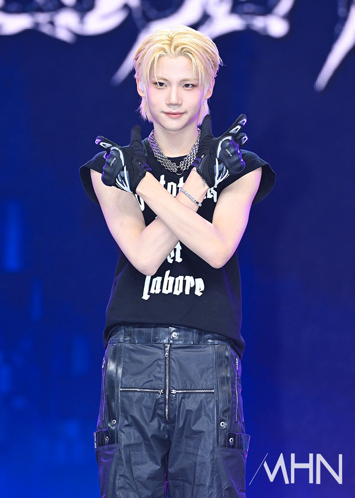 (MHN 이현지 기자) 그룹 클로즈 유어 아이즈(CLOSE YOUR EYES) 켄신이 11일 오후 서울 강서구 SBS 등촌 공개홀에서 새 앨범 '블랙아웃(blackout)' 발매 기념 쇼케이스에서 포토타임을 갖고 있다.