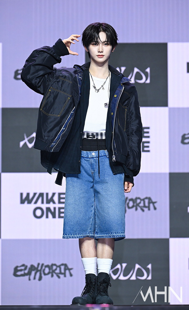 (MHN 이현지 기자) 그룹 알파드라이브원(ALPHA DRIVE ONE) 안신이 12일 오후 서울 용산구 블루스퀘어에서 진행된 미니 1집 ‘EUPHORIA’(유포리아) 발매 기념 쇼케이스에서 포토타임을 갖고 있다.