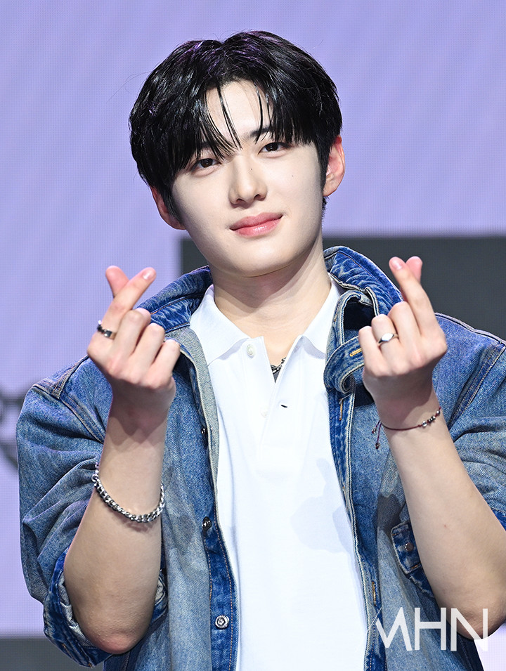 (MHN 이현지 기자) 그룹 알파드라이브원(ALPHA DRIVE ONE) 상현이 12일 오후 서울 용산구 블루스퀘어에서 진행된 미니 1집 ‘EUPHORIA’(유포리아) 발매 기념 쇼케이스에서 포토타임을 갖고 있다.