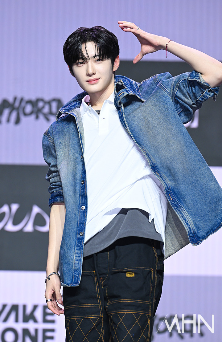 (MHN 이현지 기자) 그룹 알파드라이브원(ALPHA DRIVE ONE) 상현이 12일 오후 서울 용산구 블루스퀘어에서 진행된 미니 1집 ‘EUPHORIA’(유포리아) 발매 기념 쇼케이스에서 포토타임을 갖고 있다.