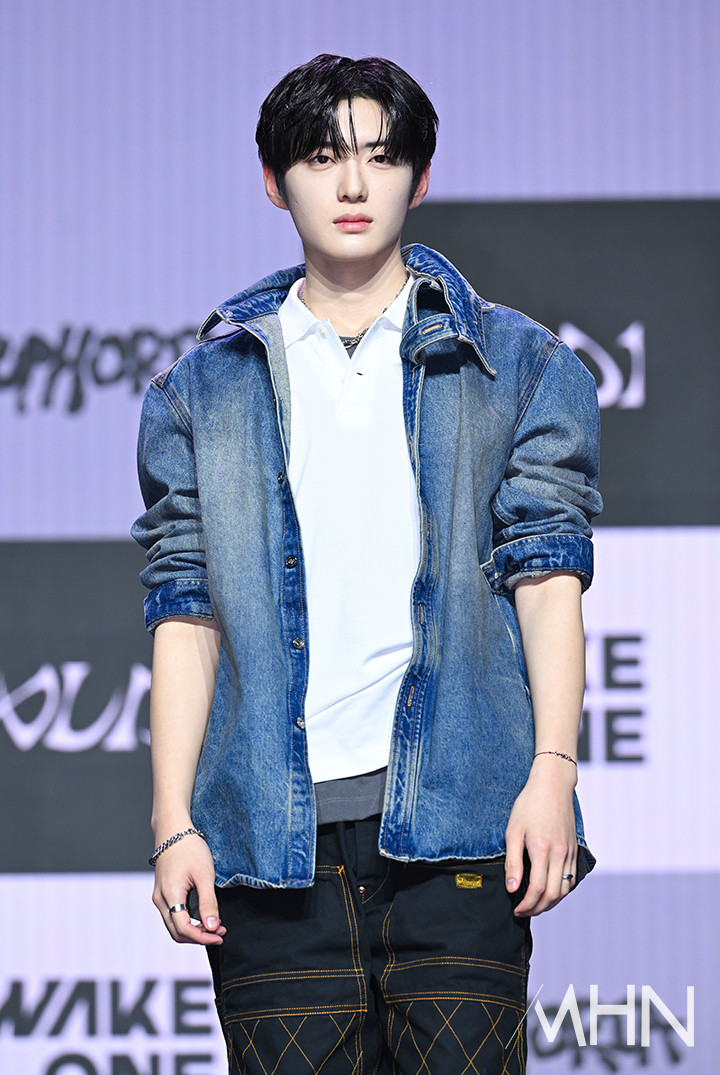 (MHN 이현지 기자) 그룹 알파드라이브원(ALPHA DRIVE ONE) 상현이 12일 오후 서울 용산구 블루스퀘어에서 진행된 미니 1집 ‘EUPHORIA’(유포리아) 발매 기념 쇼케이스에서 포토타임을 갖고 있다.