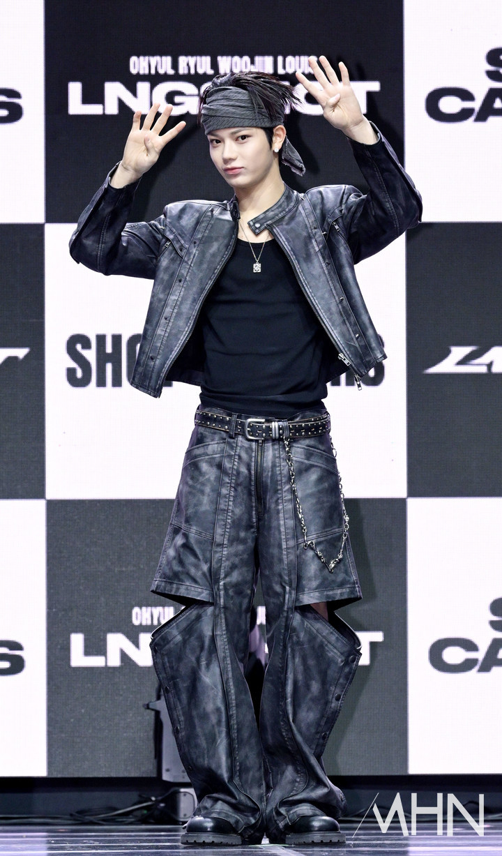 (MHN 이지숙 기자) 보이그룹 롱샷(LNGSHOT) 오율이 13일 오후 서울 영등포구 명화라이브홀에서 열린 데뷔 EP '샷 콜러스'(SHOT CALLERS) 쇼케이스에서 포토타임을 가지고 있다.
