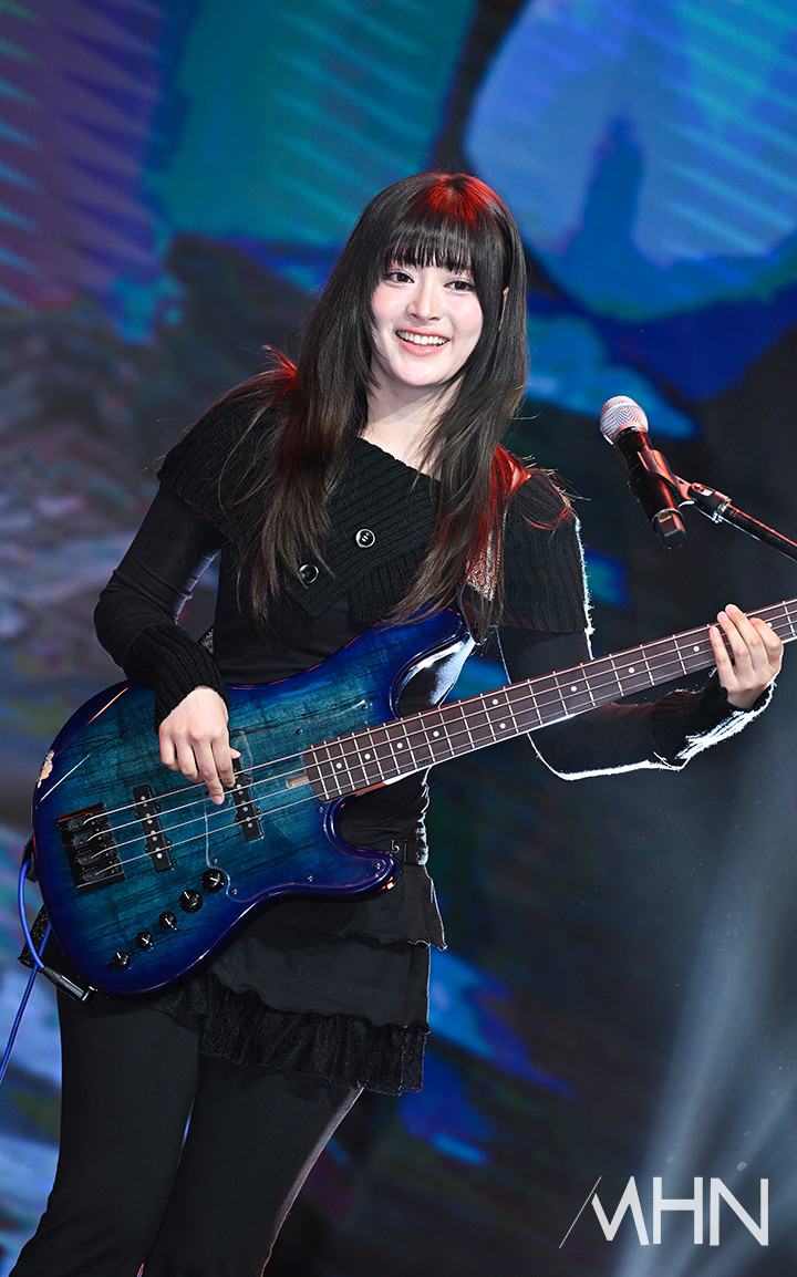 (MHN 이현지 기자) 여성 밴드 레이턴시(LATENCY) 세미가 18일 오후 서울 마포구 쇼킹케이팝센터에서 진행된 첫 미니앨범 '레이트 어클락'을 발매 기념 쇼케이스에서 신곡을 선보이고 있다.