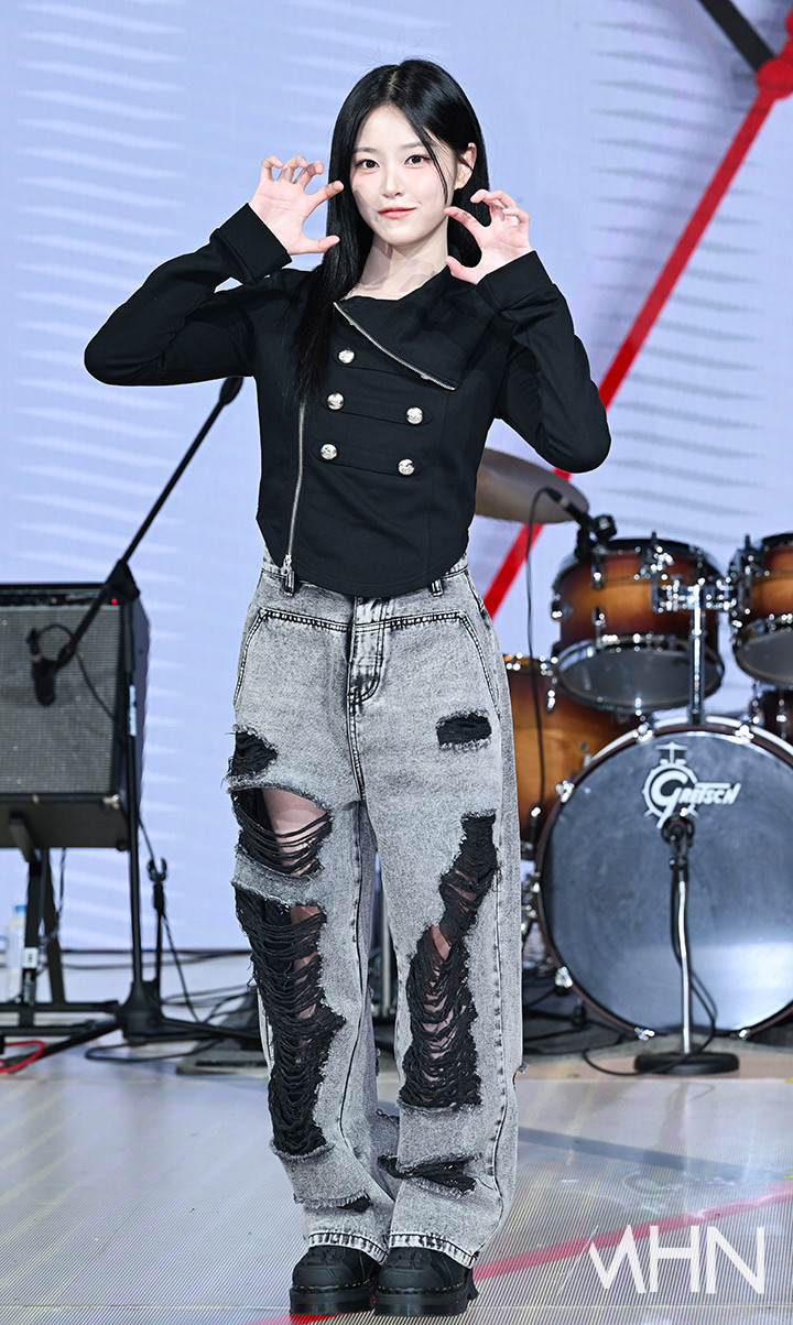 (MHN 이현지 기자) 여성 밴드 레이턴시(LATENCY) 현진이 18일 오후 서울 마포구 쇼킹케이팝센터에서 진행된 첫 미니앨범 '레이트 어클락'을 발매 기념 쇼케이스에서 신곡을 선보이고 있다.
