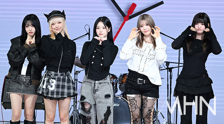 (MHN 이현지 기자) 여성 밴드 레이턴시(LATENCY)가 18일 오후 서울 마포구 쇼킹케이팝센터에서 진행된 첫 미니앨범 '레이트 어클락'을 발매 기념 쇼케이스에서 포토타임을 갖고 있다.