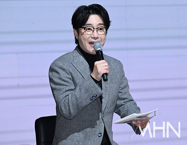 (MHN 이현지 기자) 방송인 김태진이 18일 오후 서울 마포구 쇼킹케이팝센터에서 진행된 첫 미니앨범 '레이트 어클락'을 발매 기념 쇼케이스 진행을 하고 있다.