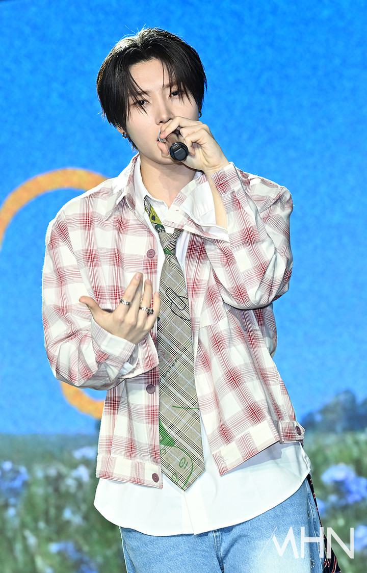 (MHN 이현지 기자) 그룹 하츠웨이브(hrtz.wav)가 8일 오후 서울 마포구 문화비축기지에서 진행된 첫 번째 미니앨범 'The First Wave' 발매 데뷔 기념 미디어 쇼케이스에서 신곡 무대를 선보이고 있다.